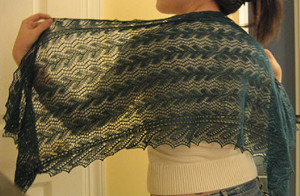 Poo. The pattern PDF contains no written pattern. Just vague references to a ridiculously complicated chart. Oh well. It really is a beautiful shawl.