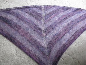 This knit shawl pattern looks like it was knit with fairy fingers. The Lace Stripes Shawl is a delicate, lacy shawl perfect for layering over a sweater for added warmth. The triangular shaped pattern alternates between lace weight mohair yarn and lace weight boucle yarn, but any lace weight yarn is acceptable. The Lace Stripes Shawl is a beautiful shade of purple that will add a dazzling touch to any outfit.