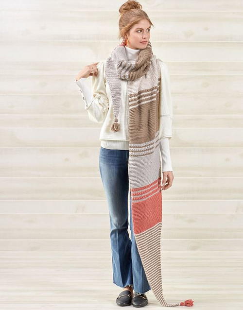 This knitted shawl wrap's fun textures and striping pattern are irresistible!
