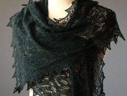 This is an amazingly delicate and lacy shawl design. It is made with lace weight yarn and small needles that really emphasize the lace look. I'm sure it would look fabulous also in white, worn over a dark color top or dress, maybe yarn with some sheen to it to make it very dressy looking.