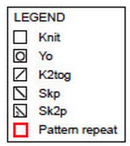 Please! If you're going to provide the pattern, provide the key for the chart. I searched it out and the link to the entire pattern in pdf form including the key for the chart is at http://www.yarnspirations.com/assets/files/pattern == -files/%5Bnode%3Aid%5D/pdf/en/Shoulder%20Shawl%20_ == %20Yarn%20_%20Free%20Knitting%20Patterns%20_%20Cro == chet%20Patterns%20_%20Yarnspirations.pdf