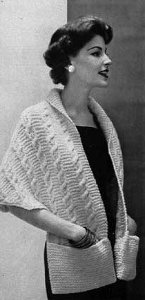 Do you know someone who is always complaining that their hands are cold? This shawl may be just what they need. The look of this shawl would be cute today, just as it was back in the day. The collar adds comfort and style, but it is the pockets that make it fun and useful.