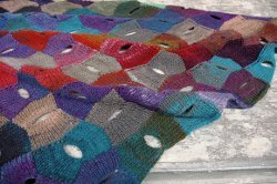 Put a funky twist on knitting entrelac and make this eccentric Entrelac Buttonhold Shawl. Each piece of the entrelac fabric features a buttonhole. When blocked, the squares are stretched into an intriguing hourglass shape. Great with a variety of yarn types and colors, this pattern is sure to grab the attention of any knitter as you walk by.