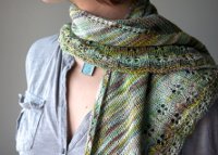 What a pretty, delicate shawl. I love how it looks like a scarf from the front and a shawl from the back. And it only takes one skein of yarn. These are the types of projects I like to splurge on by using a more expensive yarn like the merino/silk brand called for in the pattern. Great winter project for use in the spring.