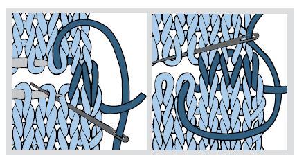 2nd rnd: K6. Work 2nd row of Panel Pat. K12. Work 2nd row of Panel Pat. K6.