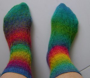 I've always been a firm believer that the type of socks you choose to put on in the morning dictate the type of day you're going to have. If you put on boring socks, you'll probably have a boring day. For a crazy, fun, over-the-top kind of day, you're going to need the Rainbow Magic Socks. This is not your typical knit sock pattern. These socks will take ten pounds off the scale, make your parking ticket disappear, and get a free pizza delivered to your door. So pick up your knitting needles and experience the magic for yourself.
