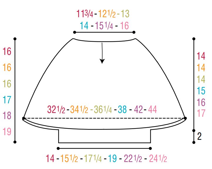 The instructions are written for smallest size. If changes are necessary for larger sizes the instructions will be written thus ( ). Numbers for each size are shown in the same color throughout the pattern. When only one number is given in black, it applies to all sizes.