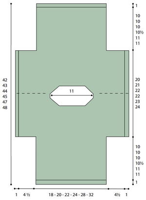 Finished SizeTo fit bust measurement: Extra-Small/Small 28-34" [71-86.5 cm]; Medium 36-38" [91.5-96.5 cm]; Large 40-42" [101.5-106.5 cm]; Extra-Large 44-46" [112-117 cm]; 2/3 Extra-Large 48-54"; [122-137 cm] 4/5 Extra-Large 56-62"; [142-157.5 cm]. Finished bust: X-Sma
