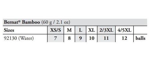 - Bernat® Bamboo (60 g / 2.1 oz); 63 yards / 57 meters