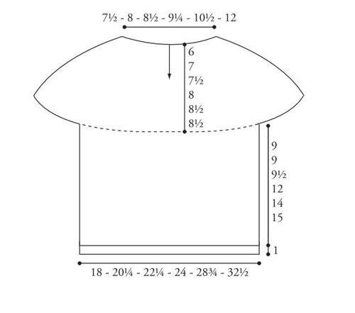 Knit in rnds even until work from dividing rnd measures 9 (9-9½-12- 14-15) ins [23 (23-24-30.5-35.5- 38) cm], dec 5 sts evenly across last rnd. 131 (147-163-175-211-239) sts.