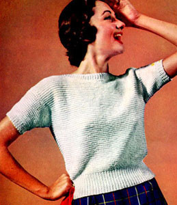 This sweater does remind me of something my mother wore when women still wore skirt most of the time. But I can see that it would be equally adorable with a nice pair of slacks. For vintage inspired dressing, I think I would pair it with a knotted scarf or look for a set of vintage Coro scatter pins. Its simple enough to dress up or down and would look great with a pair of Capri pants for summer.