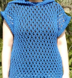 This Peek-a-Boo Pullover is so light and airy that it is perfect for summer. Layer this free knitting pattern with a long sleeve shirt, or even a tank top, for a cool summertime look. The attached hood is something unique to this pattern and is sewn on after the project is completed. The bright blue color used in this pattern complements the beautiful beach water you'll see all summer. This pattern is also cute as a swim suit cover up.