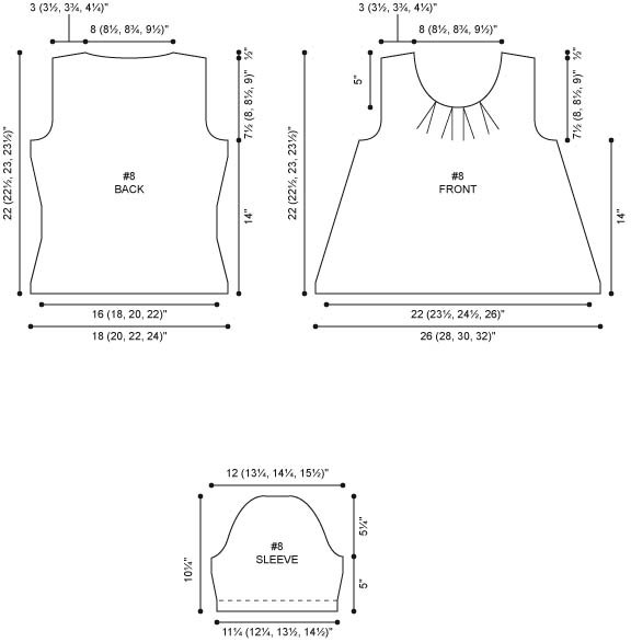 Block pieces to measurements. Sew Shoulder seams. Set in SLEEVES; sew side and Sleeve seams.