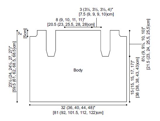 Length: 23½ (24, 24½, 27, 27)” (59.5 (61, 62, 68.5, 68.5) cm)