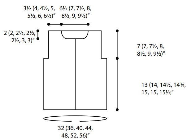 - Notions: 18 (19, 20, 20¾, 21, 21½, 22½)” zipper, sewing needle and matching thread, stitch holders, yarn needle