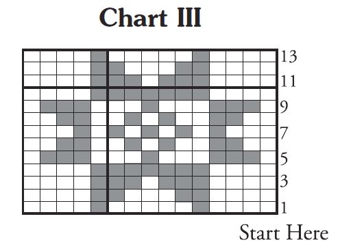 Next rnd: (With A, K1. With MC, K1) 4 (5-5) times. With A, K2. With MC, K1. With A, K1. Work 1st row of Chart II (IV-IV) across next 13 (17-