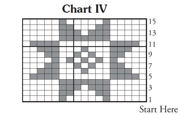 All sizes: Last 2 rnds form side and sole pat. Chart is now in position. Keeping cont of pat, cont even until Chart is complete.