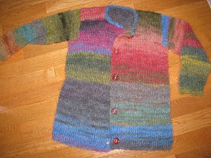 Have you ever seen all the colors of an autumn sunset? This beautiful knit coat pattern is knit with all the oranges, blues, purples, reds, and greens of a breathtaking autumn night. The Autumn Sunset Sweater Coat is both nubby and thick, has a pretty collar, and four adorable buttons. Its cozy construction makes and rustic look makes it the perfect coat to wear while enjoying the beautiful autumn evening colors outside.