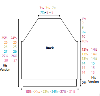 Finished SizeTo fit bust/chest measurement: Extra-Small/Small 28-34" [71-86.5 cm], Medium 36-38" [91.5-96.5 cm], Large 40-42" [101.5-106.5 cm], Extra-Large 44-46" [112-117 cm], 2/3 X-Large 48-54" [122-137 cm], 4/5 X-Large 56-62" [142-157.5 cm]