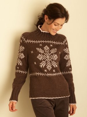 This wintery wonder of a knit sweater pattern features a large snowflake motif and a flattering silhouette. The Festive Snowflake Sweater is a lovely way to practice Fair Isle knitting while creating a garment that will stand the test of time. This classic knit sweater pattern is versatile enough for winter wear, yet spirited enough for holiday attire. We love the chocolate brown and cream contrast, but have fun experimenting with other festive holiday colors.