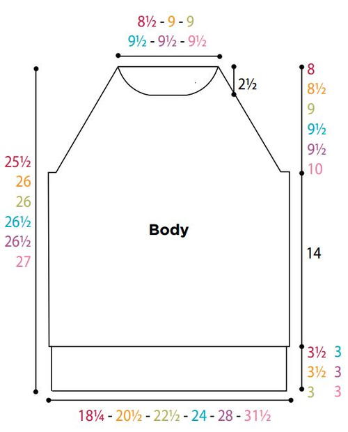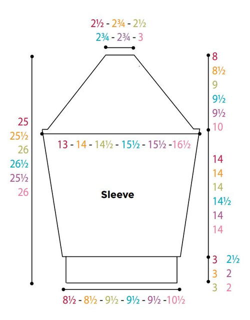 The instructions are written for smallest size. If changes are necessary for larger sizes the instructions will be written thus ( ). Numbers for each size are shown in the same color throughout the pattern. When only one number is given in black, it applies to all sizes.