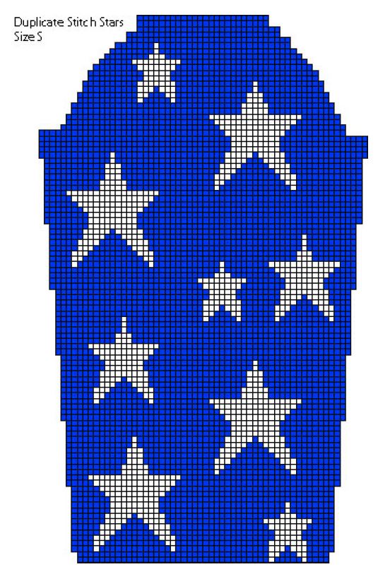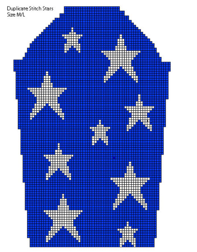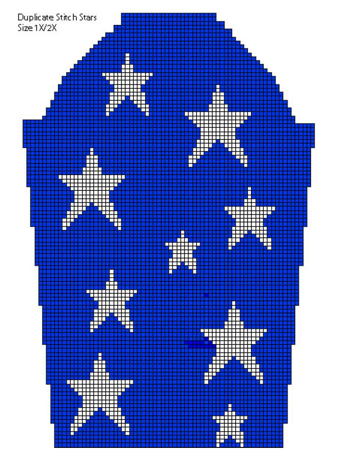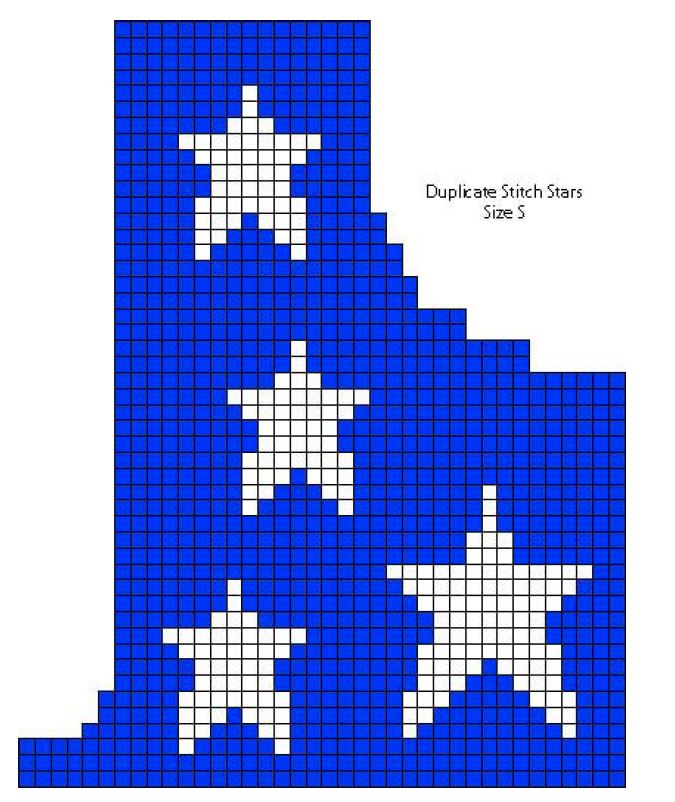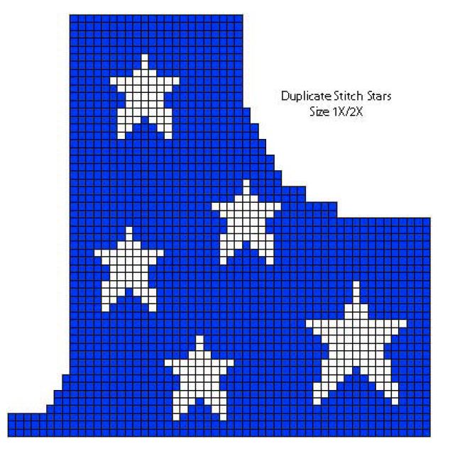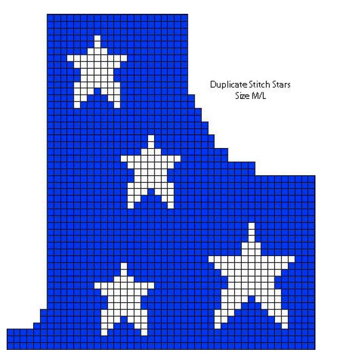 With B and following Charts, embroider duplicate st Stars onto Front and Right Sleeve.