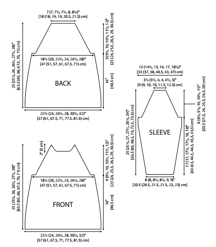 1. Sweater is made in four pieces: Back, front, and two sleeves.