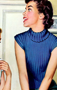 It's 1952, and you've got a date tonight. On your way to meet that special someone at the soda shoppe, you fret about the outfit you've picked. Should you have picked something besides a skirt and sleeveless turtleneck? But no, it's cute and classy, and if you had sleeves, he wouldn't have an excuse to lend you his jacket. Capture the romance of that storybook moment with vintage knitting patterns like the Soda Shoppe Sleeveless Turtleneck. You'll be glad you know how to knit a sweater that sets your imagination afire.