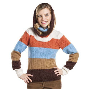 This pullover can be worn with turtleneck folded down or worn over the head as a hood.