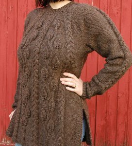 The Winter Woods Tunic is the perfect winter weekend sweater. This pretty knit sweater pattern has a beautiful cable stitch design with a lovely row of stitched leaves. You'll love cozying up on the couch with a good book wearing this sweater because it's so soft and warm. The best part about The Winter Woods Tunic is that it's slightly over-sized and longer than the traditional sweater, perfect for keeping you nice and toasty all season long.