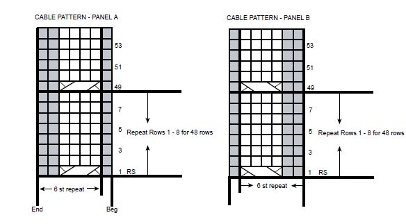 Repeat Rows 1 – 8 five times more, then repeat Rows 1 - 6 once more for Cable Panel A.