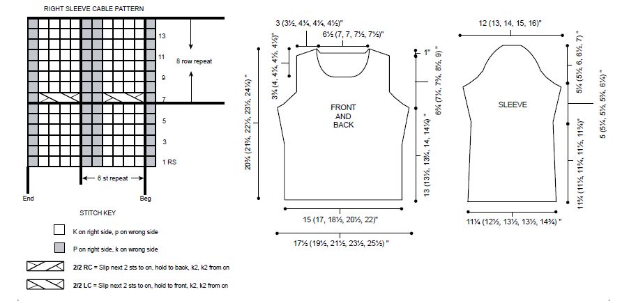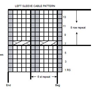 Repeat Rows 7 – 14 for Left Sleeve Cable Pattern.