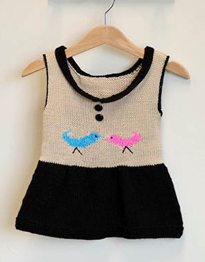 It doesn't get much cuter than the Little Birdie Dress. This simple stockinette stitch knit dress pattern is a charming addition to any little girl's wardrobe. Featuring a separately seamed and stitched bodice enhanced with an adorable intarsia bird motif, this tiny dress is a slightly more challenging (yet satisfying) knit. A rounded neckline and two sweet buttons add a touch of whimsy and timeless style to this adorable Little Birdie Dress.