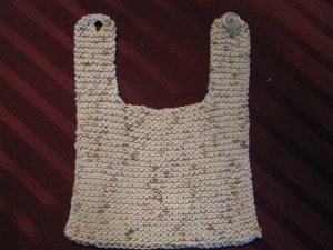 What a terrific little pattern and the author is right, it can be made in two hours. The dish cloth cotton makes it nice and absorbent. It took slightly less than one 50 gram ball of Lion Brand Kitchen Cotton, so less than 100 yards per bib.