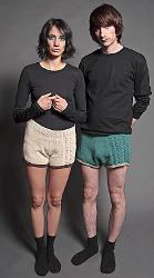 These knit shorts are quite unique. You can make them for a man or a woman. Circular knitting needles are required. They're simple and comfortable.
