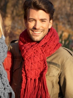 A vibrant color and an interesting texture collide to form the Fire Engine Scarf. This knit scarf pattern proves that men can wear red - and they can wear it well. This handsome scarf features a simple lace design, making it an engaging piece for beginning or novice knitters. Knit the Fire Engine Scarf for the man in your life. It makes a great gift any time of the year.