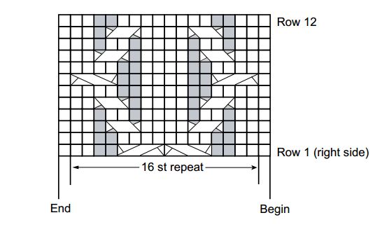 GAUGE: 27 sts = 4”; 24 rows = 4” in Cable Pattern with larger needles.