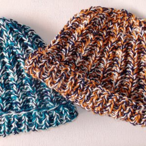 Clear out your yarn bin and make room for your springtime knitting supplies with the Stashbuster Tweed Hat. This cute and classic knit hat pattern is extremely versatile and great go-to hat for every member of your family. With instructions for men, women, and teens, there's no excuse not to have matching hats for the remainder of the season! The Stashbuster Tweed Hat is knit with two strands of DK yarn knitted together, giving it a classic tweed look.