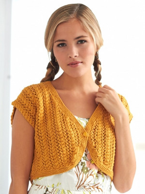 Get the perfect summer look with the Cabled Lace Bolero. This stylish little sweater is the perfect way to stay warm on a cool evening or at the office. A simple cable pattern offers a strong visual contrast for the lace work crisp and clean, this bolero is a perfect addition to any wardrobe. The involved pattern will keep experienced knitters interested and engaged as they work, making this a great pattern to work on during a long car ride or while waiting at the doctors office.