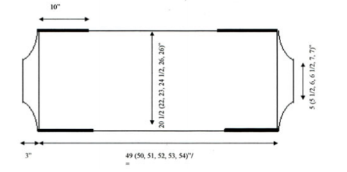 Finished SizeFinished Width: S 55" [139.5 cm], M 56" [142 cm], L 57" [145 cm], XL 58" [147.5 cm], 2XL 59" [150 cm], 3XL 60" [152.5 cm]. Finished Length: S 20.5" [52 cm], M 22" [56 cm], L 23" [58.5 cm], XL 24.5" [62 cm], 2XL 26" [66 cm], 3XL 26" [66 cm].