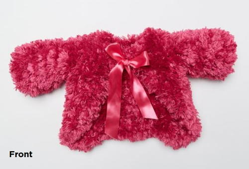 Adorable as can be, this Pretty Pink Fashion Fur Shrug for Girls by Red Heart is almost too cute for words! This easy knit shrug pattern is made using jumbo yarn and will be a warm and fashionable addition to any little girl's wardrobe. Bright and fashion-forward as can be, this shrug likely won't stay stored in a closet for long! If you'd like, consider creating this shrug with other bold colors so that the accessory can coordinate with just about any ensemble. This easy knit pattern is available in several different sizes. In addition, a diagram for the pattern, as well as images of the front and back of this design, are available below.
