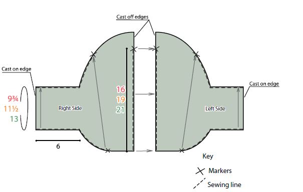 Place markers 16 (19-21)" [40.5 (48-53.5) cm] along cast off edge (see Diagram).
