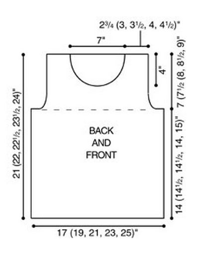Cast on and work as for Back until armhole measures 3 (3 1/2, 4, 4 1/2, 5)" from beginning, end with a WS row—55 (59, 63, 67, 71) sts remain; place a marker each side of center 11 sts.