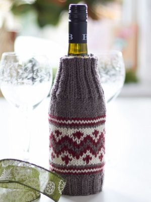 What a fun gift to knit! I could see making this and giving it with a bottle of wine, maybe tie a ribbon bow around the top of the cozy. You could make it in fall or winter colors. This would look nice on any holiday table, or for a cozy dinner with friends. Love it!