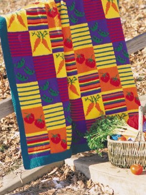 Celebrate the season's offerings on the table and off this Thanksgiving with the Harvest Afghan. This gorgeous knit afghan pattern is a wonderful exercise in colorwork and charted knitting patterns. Featuring a block-like design with carrots, peas, and tomatoes, the Harvest Afghan is the quintessential way to decorate your home for this year's Thanksgiving festivities.