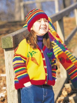 Celebrate the season's offerings on the table and off this Thanksgiving with the Kids' Harvest Cardigan. This darling children's knit cardigan pattern is the perfect way to dress them for the annual neighborhood football game before the big feast. This festive cardigan is a fun exercise in colorwork and charted knitting instructions. Great for family photo opportunities, the Kids' Harvest Cardigan is a Thanksgiving garment you'll love being able to say you made. Instructions are included for a matching hat, as well.