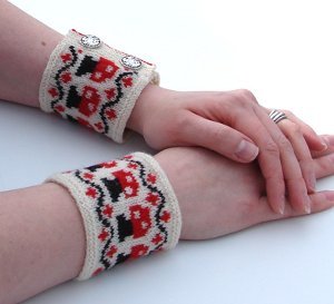 Red and cream yarn gives these wrist warmers a vintage feel. This is a free knitting pattern that works well with fine yarn that sticks together.
