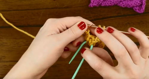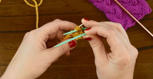 Place the three stitches from the cable needle back onto your knitting needle and knit those stitches.