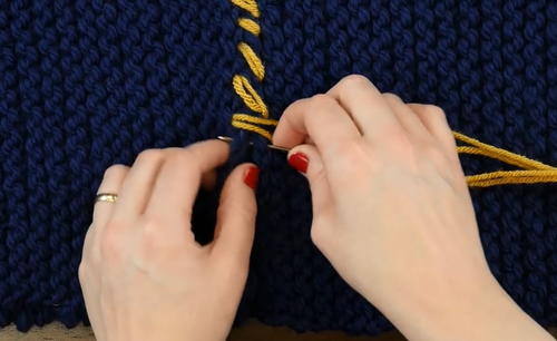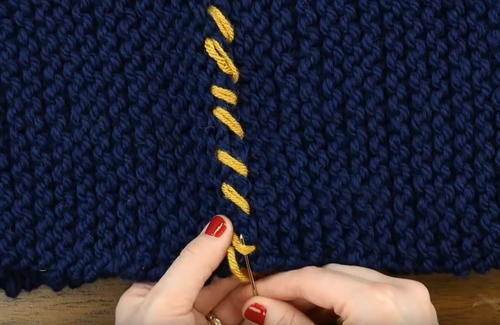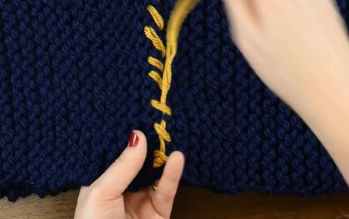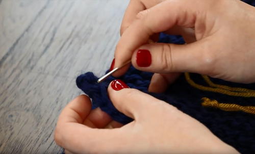 Insert the tapestry needle into the stitch on the other end of your scarf that aligns with the first stitch. This is essentially a whip stitch.
